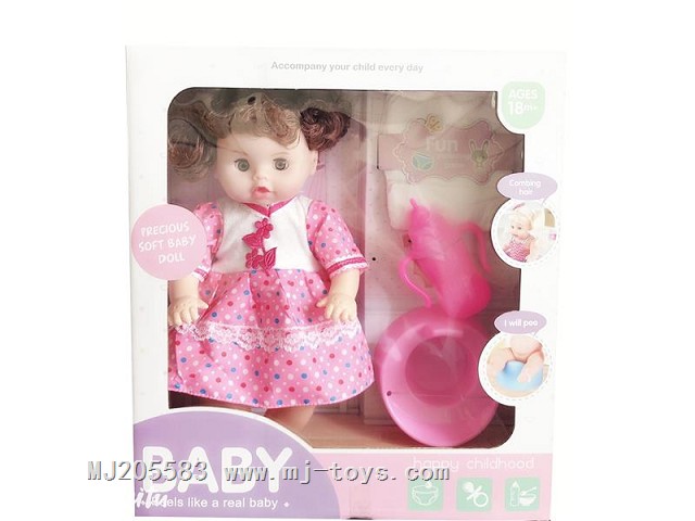 MJ365484 Two 14 inch drinking water urination dolls with dining chair, rocking table, plastic cart, with 6-tone IC