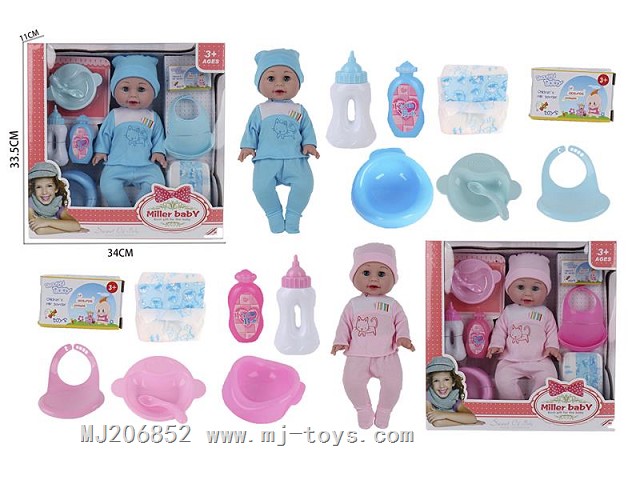 MJ205637 14 inch two in one living eye drinking and urinating boy with shaker / cart / accessories with 4-tone IC
