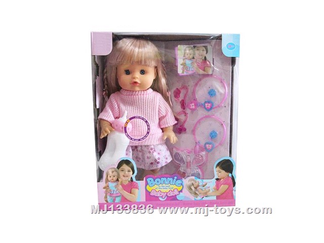 MJ291949 14 inch inflatable baby girl drinking water, urinating belt, 4-tone IC
