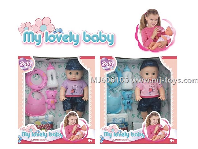 MJ603491 9 "glue glue crying baby can drink water real tears with four music with pacifier baby kitchen set diapers baby cradle 5 mixed pack