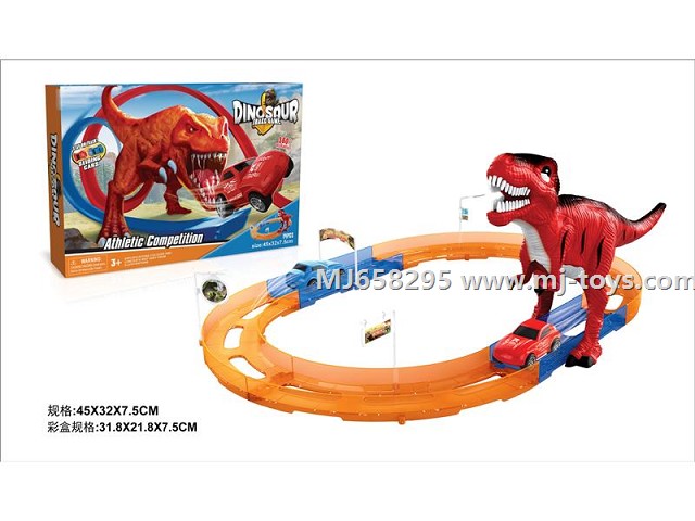 MJ321984 2.4G six way remote control rotary roller coaster spray dinosaur luminous rail car with light 339PCS (no electricity)