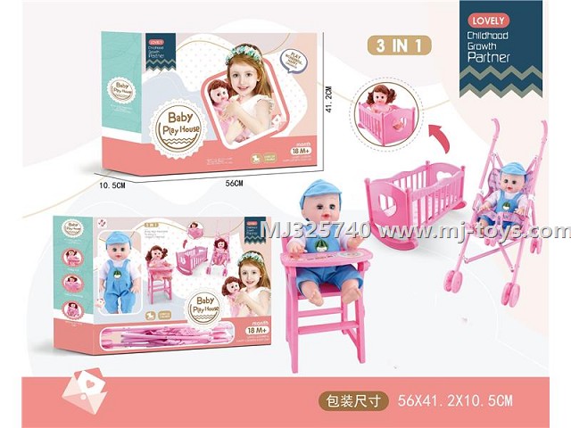 MJ325743 16 inch doll drinking water and urinating + cart + accessories