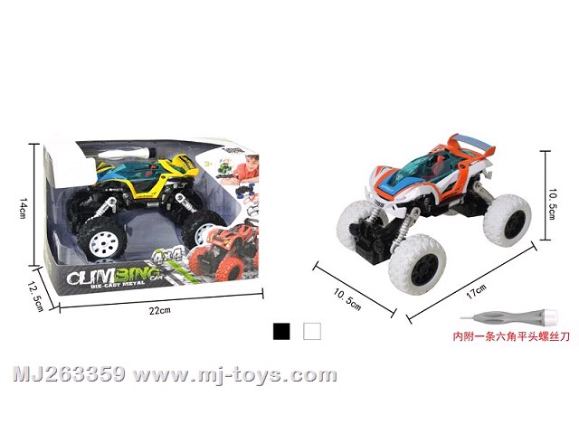 MJ299734 1: 32 alloy front and rear return shock absorber with spring (shark) climbing car 1 type 2 color mixed