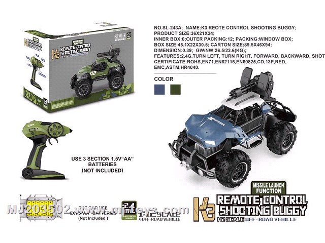 MJ321475 Four way remote control military missile vehicle with light (3 guns)