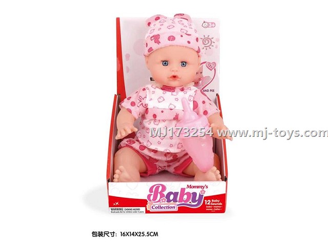 MJ173394 16 inch injection molded body button 12 sound IC drinking and urinating baby (with diaper, bottle, pacifier, meal carton)