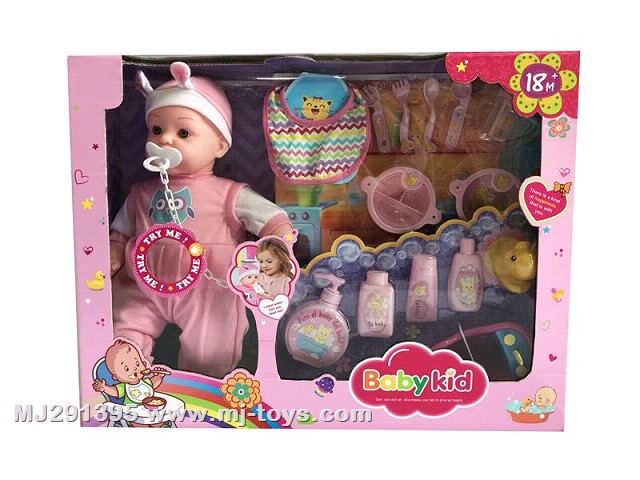 MJ283506 16 inch enamel empty body movable eye doll 6 voices IC with water to pee / toilet / pacifier / wet proof
